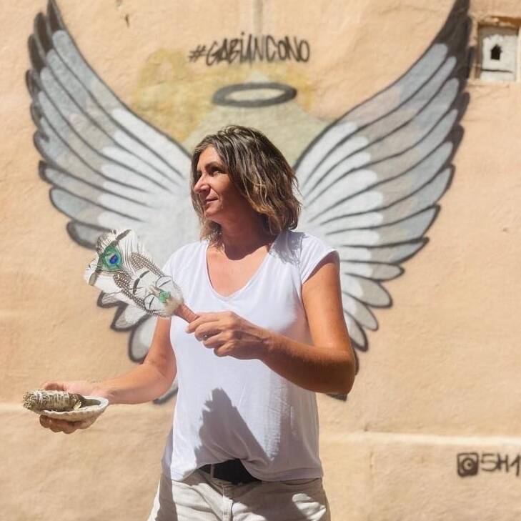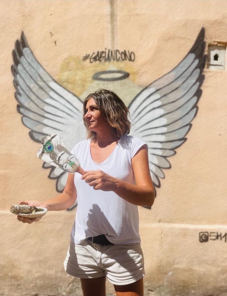 Elle est aujourd’hui praticienne en chamanisme certifiée, formée en cérémonie du cacao et travaille avec l’esprit des oiseaux, des éléments de la médecine de la voix.